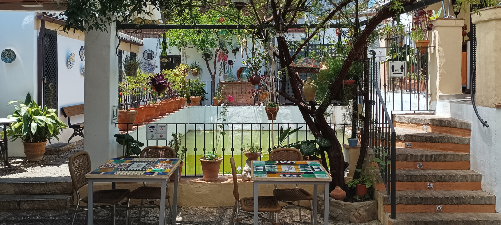 Como todo Carmen Granadino, las plantas y el agua predominan en todo el restaurante.